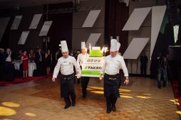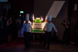 Partea oficială a Galei Jubiliare a culminat cu mulțumirile aduse partenerilor de către Președintele FAKRO și un toast festiv rostit de Membrii Consiliului de Administrație. Apoi, a fost adus un minunat tort aniversar în culorile FAKRO.